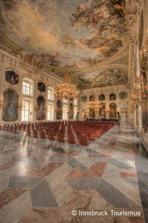 View Short DescriptionThe irregular ground plan of the extensive palace complex located between Rennweg and Dome in the centre of Innsbruck’s old city is a product of its step by step construction from the Late Middle Ages onwards. Between 1755 and 1780, during the reign of Maria Theresa, the building was converted into a Late Baroque residence along Viennese lines. Especially impressive is the elongated façade extending to Rennweg, the four-winged inner courtyard, and the “Riesensaal” (Hall of Giants) painted by Maulbertsch.