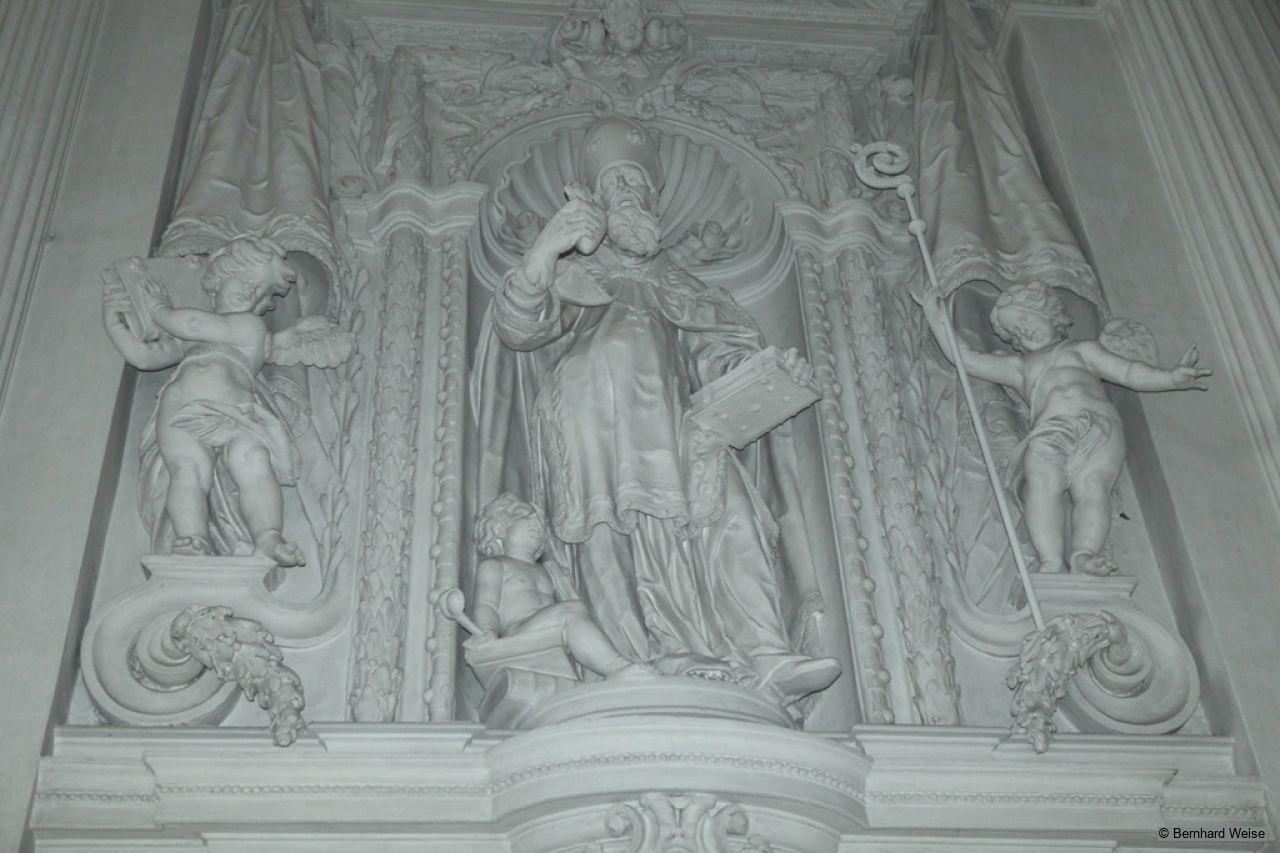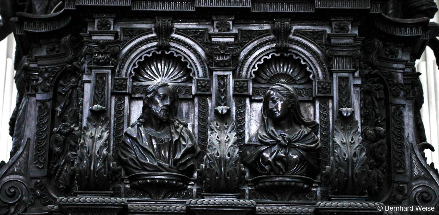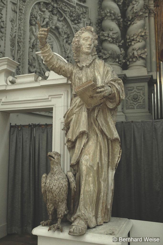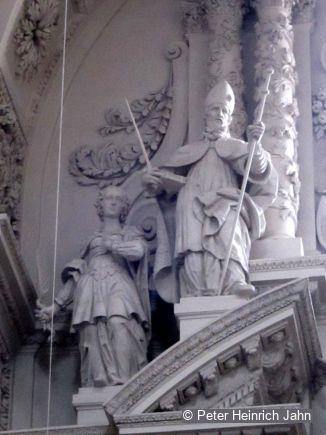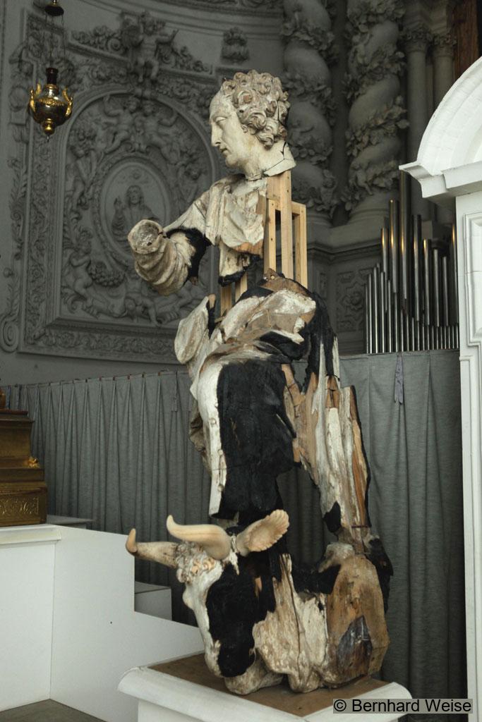 Towards the end of World War II the entire choir area was destroyed by fire, including the high altar, the choir screen and the tabernacle. Of the four evangelist figures flanking the passageways through to the choir, only Marcus, John and Lucas have remained intact. They are counted among the most accomplished Baroque sculptures in Bavaria.
