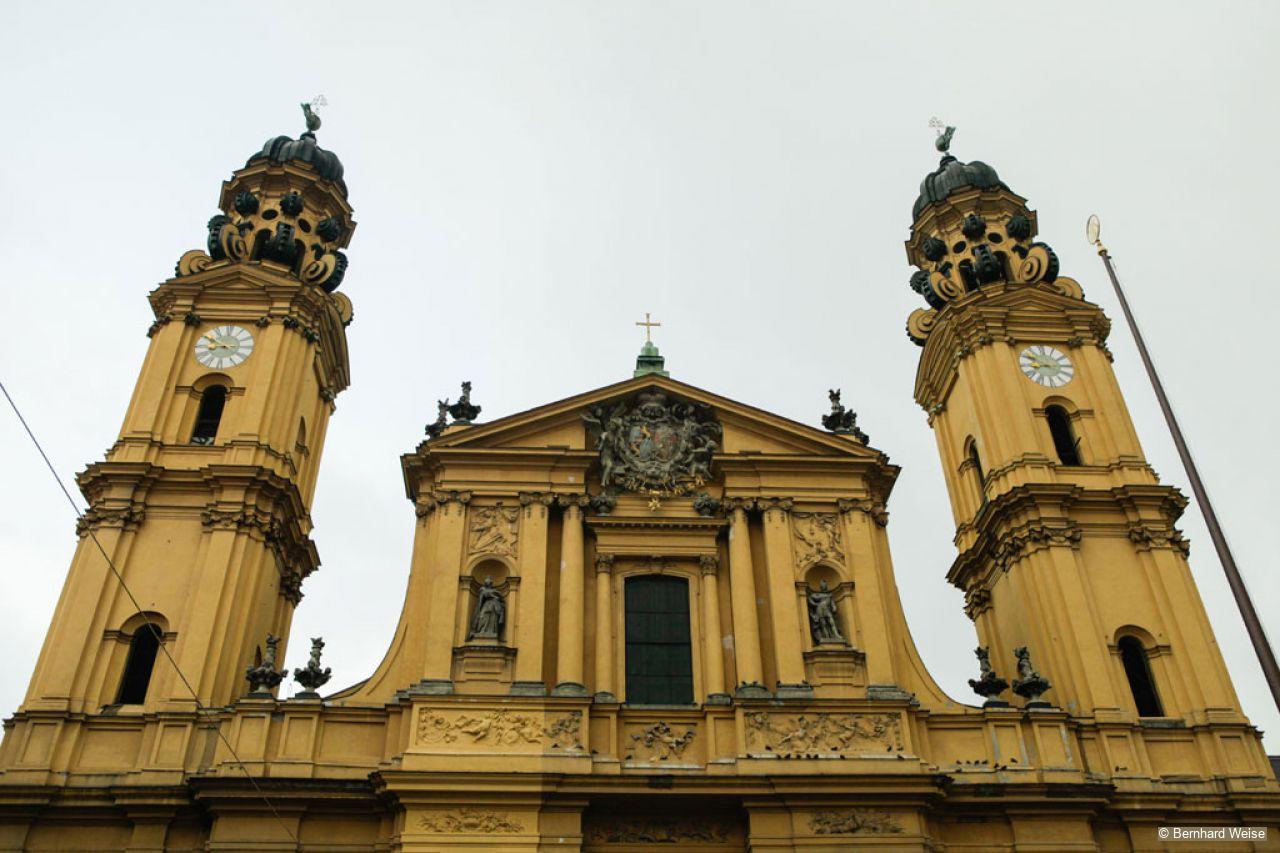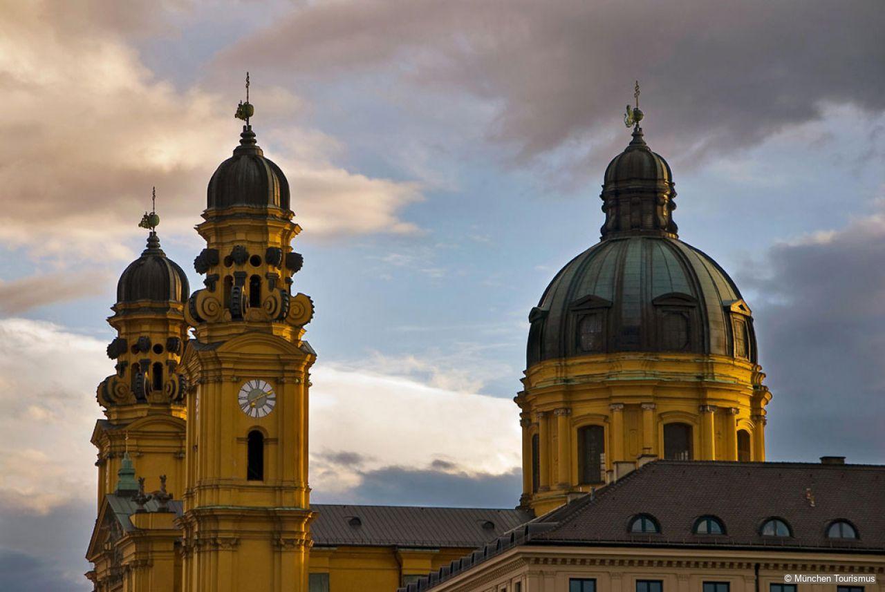 The Theatine Church is a landmark of “Odeonsplatz” in Munich due to its unique yellow colour and monumental appearance. Built as a votive church by the Elector and his wife to celebrate the birth of crown prince Max II Emanuel, the white-stucco interior which is lavishly decorated and has splendorous columns, is overwhelming. With its tambour cupola pointing towards Rome the Theatine Church is an example of the Italian High Baroque in Bavaria, which really became established after the end of the Thirty Years’ War.