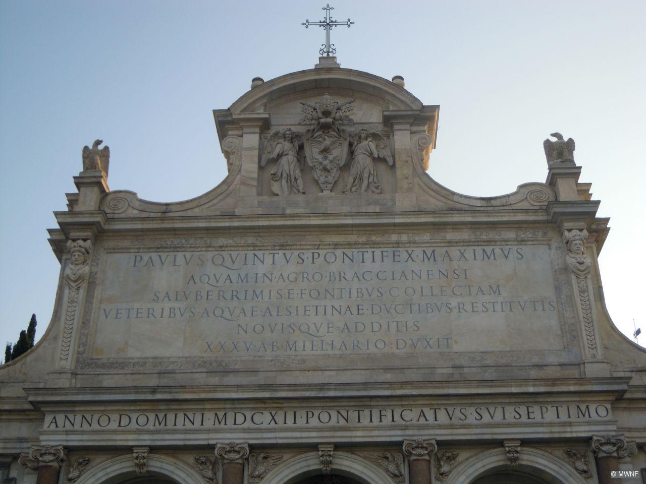 View Short DescriptionThe “show-fountain”, imitating a triumphal arch, was designed by Flaminio Ponzio and Giovanni Fontana, dedicated to Pope Paul V Borghese. It celebrates the great undertaking of bringing water from the Lake of Bracciano (about 40 km away) to Rome.