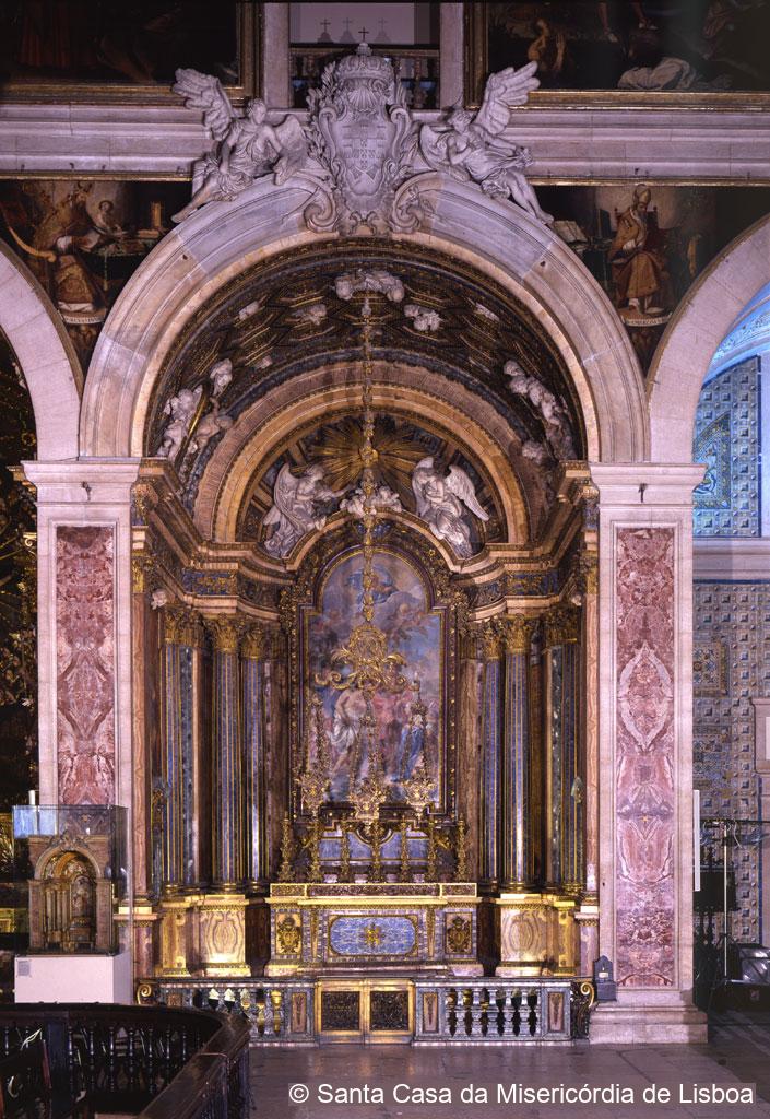 O retábulo é da autoria do mestre entalhador Bento da Fonseca de Azevedo (século XVIII).