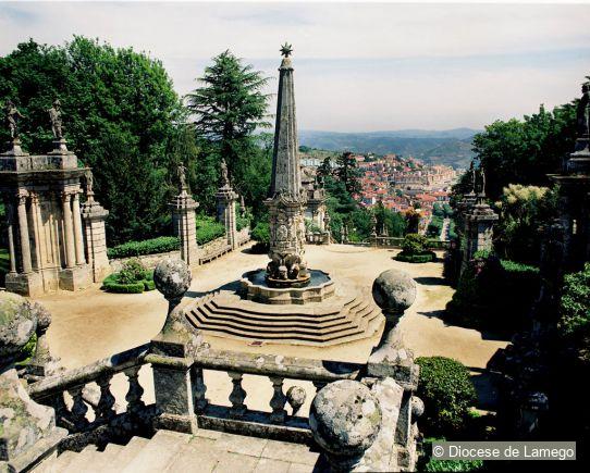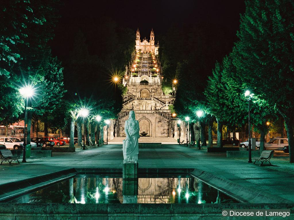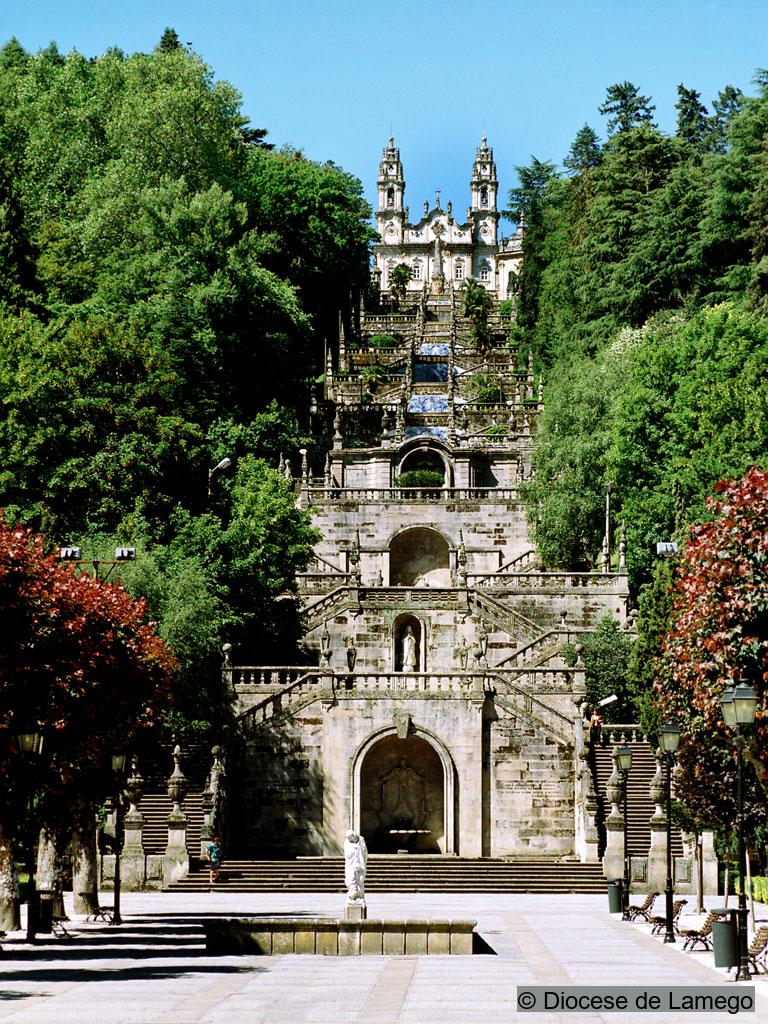 Located on top of a hill facing Lamego, the Sanctuary of Our Lady of Good Remedy is composed of a church and an enormous stairway located in a park with Iberian, Mediterranean and exotic trees. The church has a longitudinal plan with a nave and a higher hexagonal main chapel.