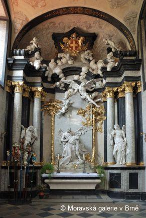 K farnímu kostelu dal F. A. Rottal přistavět memoriální kapli s rodinnou hrobkou. Portréty stavebníka a jeho manželky v životní velikosti tvoří boční oltáře a představují je jako uměnímilovné a zbožné panovníky. Spolu s reliéfem Krista na hoře Olivetské patří mezi vrcholná díla žáka G. Donnera. Úmrtím F. A. Rottala vymřel rod Rottalů po meči.