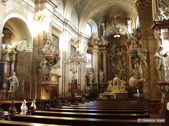 F. A. Rottal získal do svých služeb přední umělce. Hlavní oltář nenese obraz, ale plastické Nanebevzetí P. Marie J. J. Schaubergera. Hodnotnou sochařskou výzdobu dotváří Zahnerova křtitelnice se sousoším Kristova křtu na zeměkouli, boční oltáře a sochy na průčelí. Oba sochaři spolupracovali i na jiných zakázkách.