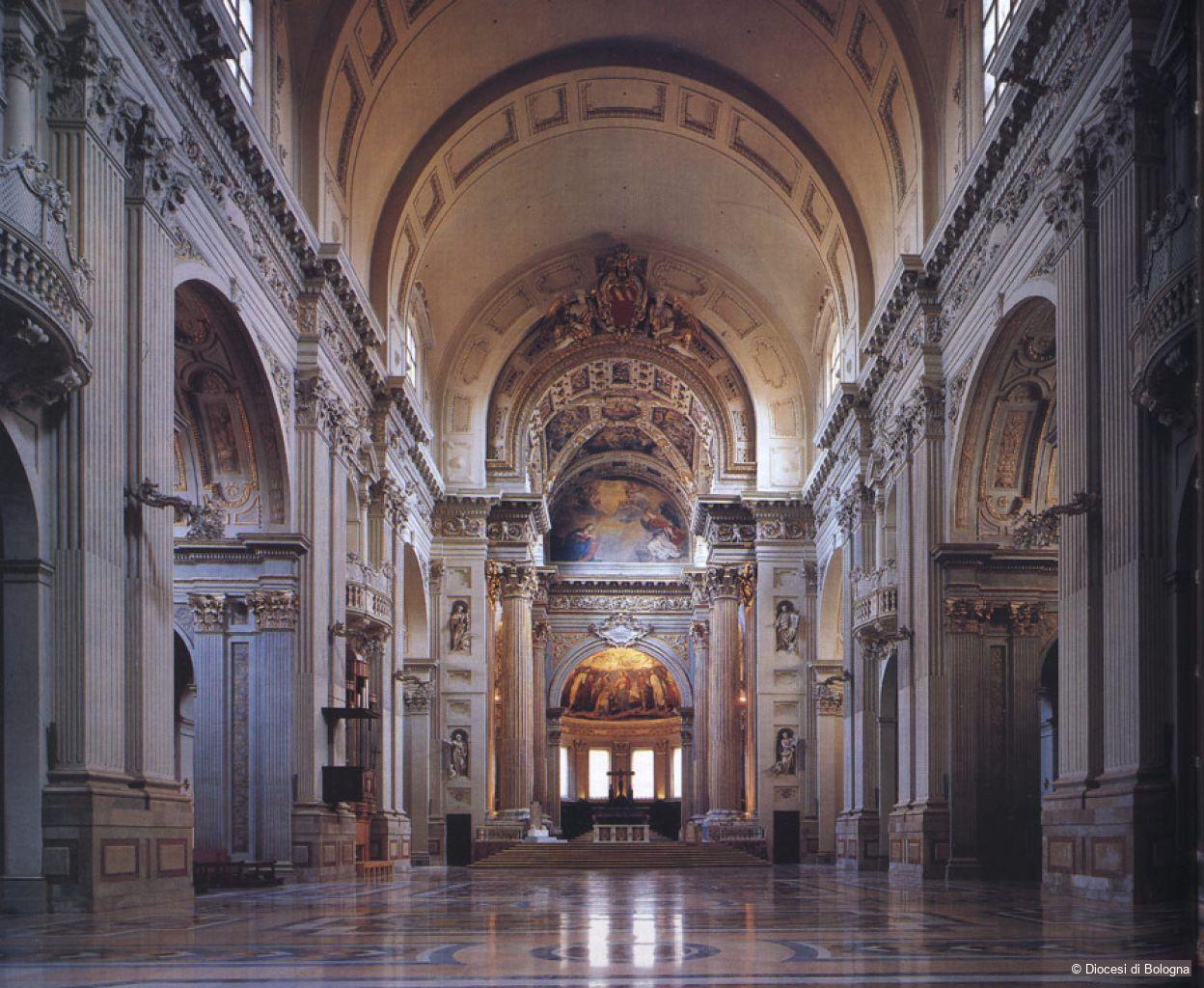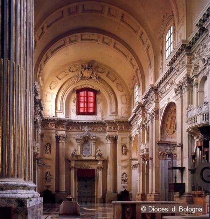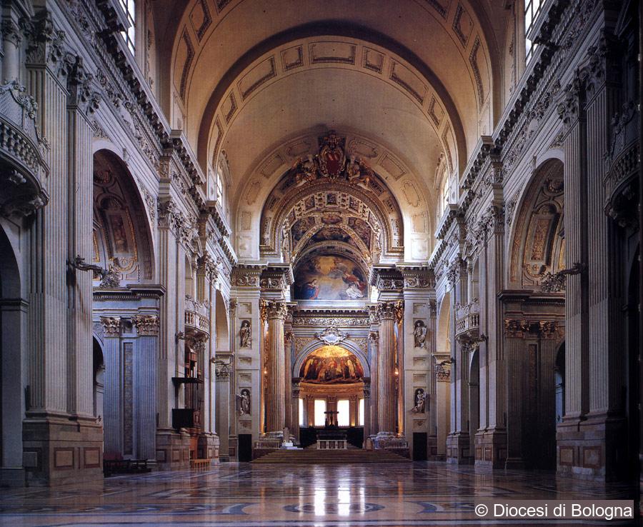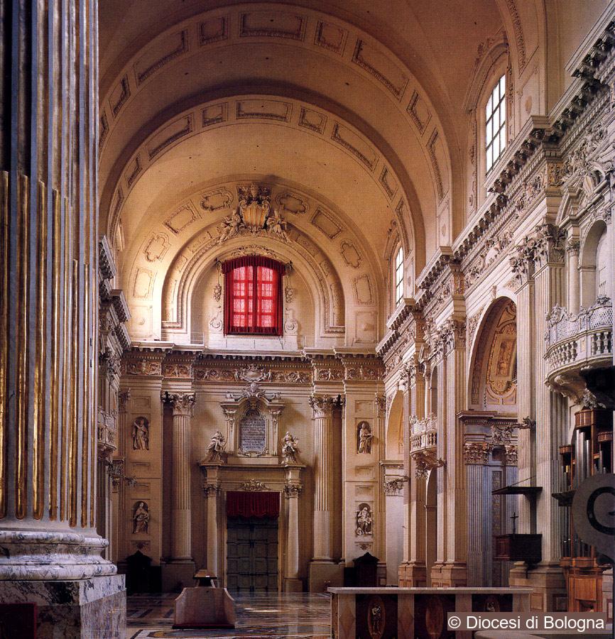 In 1734 Cardinal Prospero Lambertini commissioned Torreggiani with the completion of the Cathedral. The restoration of the cardinal’s chapel, the second on the left, dedicated to the Holy Sacrament, is the most significant example of the work of Torreggiani.