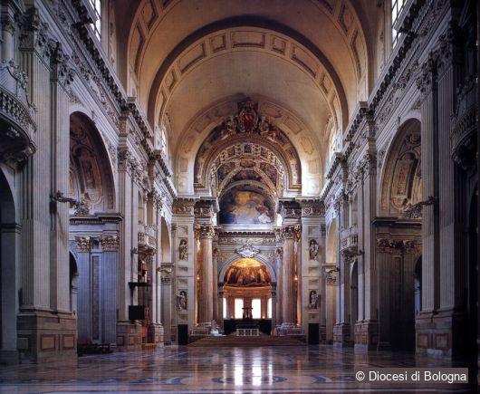 St. Peter's cathedral, whose original nucleus dates back to the 11th century, was remodeled and rebuilt between the second half of the 16th century and the 18th century. The imposing interior, nearly as high as that of St. Peter's in Rome is richly decorated with stuccoes, marbles, gold, frescoes and other works of art. The church holds pictures by Prospero Fontana, Ludovico Carracci, Marcantonio Franceschini and Donato Creti, and a terracotta group of depicting the Mourning over the dead Christ by Alfonso Lombardi.